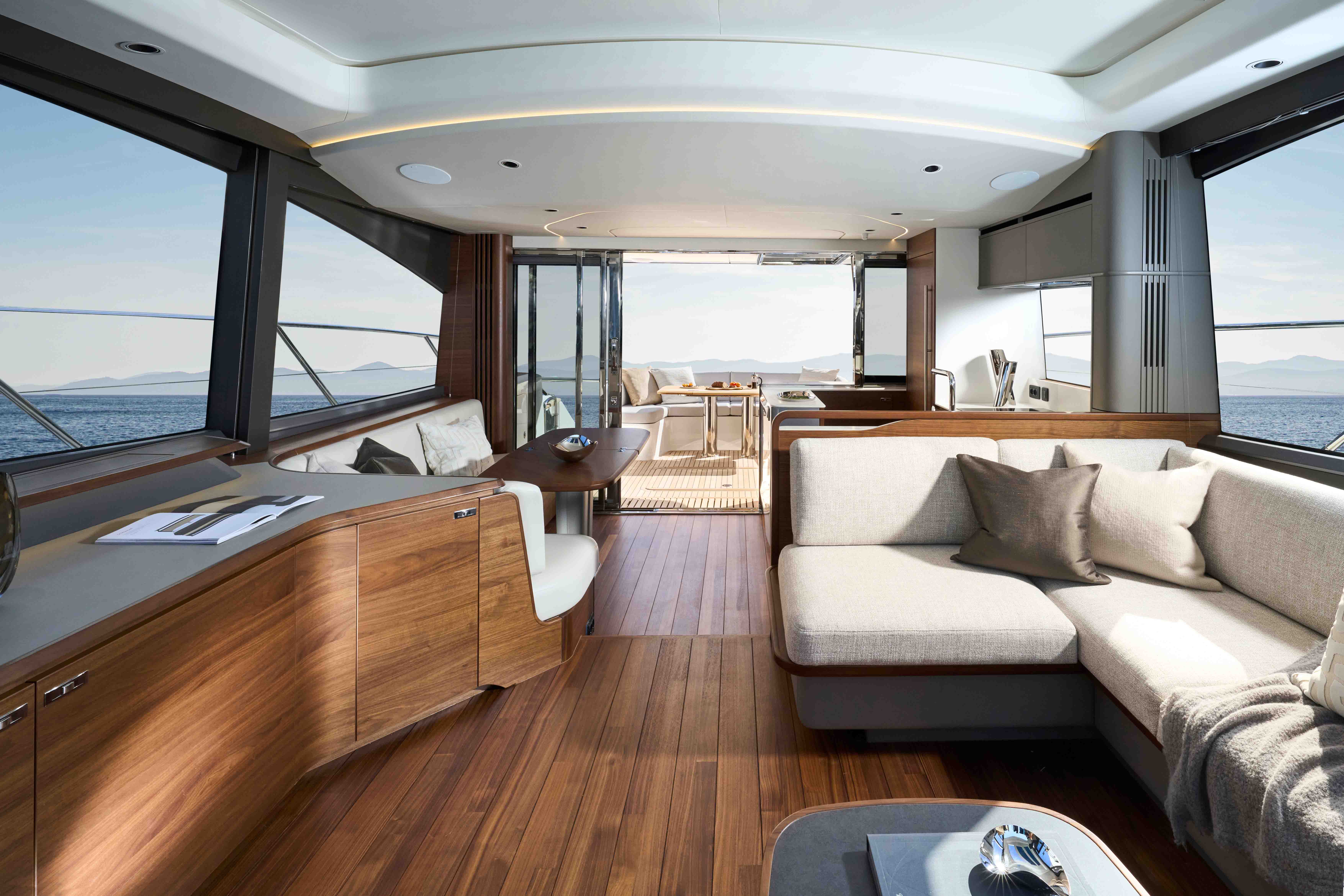 激越人心的 V65 在性能与设计上双双树立新标杆。布局灵活的客厅配有空调系统,可确保室内保持清凉舒爽,您也可将三片式船尾滑动门和伸缩式天窗打开,充分感受自然气息。
